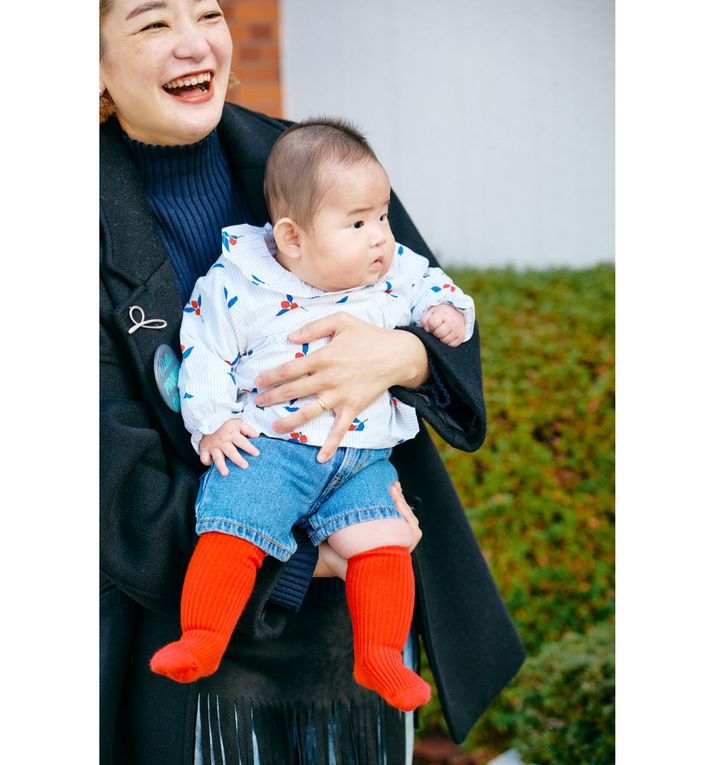 川島幸恵さん&にこちゃん(0歳6ヵ月)アパレルショップでプレスとして活躍後、アパレルブランド『SHENERY(シーナリー)』のディレクターを務める。2025年に長女を出産し、現在は育休中。にこちゃんは絶賛寝返りブームで、奇跡的にできる寝返り返りに胸を躍らせる日々。