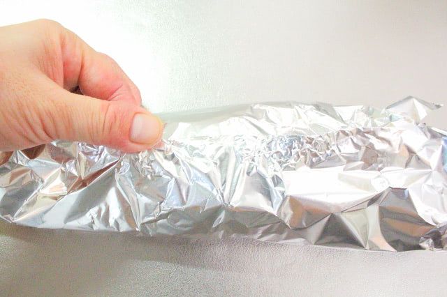 手前と奥のアルミホイルを重ねて2回折り、両端とも、重なったアルミホイルを2回折るとしっかりと包めました。