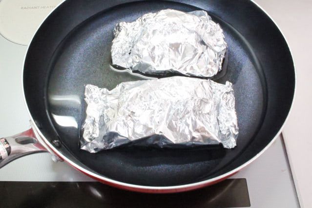 フライパンから取り出してしばらくしても、熱伝導率の高いアルミホイルで包んでいるので、温かいままなのがうれしいです。
