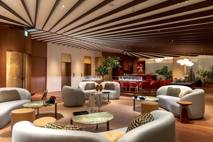 会場となったレジデンスは、通常はオープンしていないプライベート空間であり、特別なイベントや限られた機会にゲストをもてなすための場所。和傘を思わせる天井のリブ、ダークウッドと白が織りなす陰影のある内装が、落ち着いたムードをつくっています。