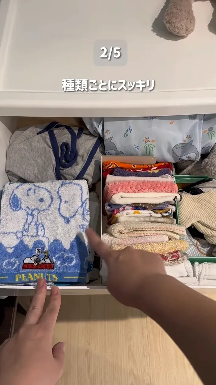 タンスの中でごちゃつきやすい、衣類やタオル類。