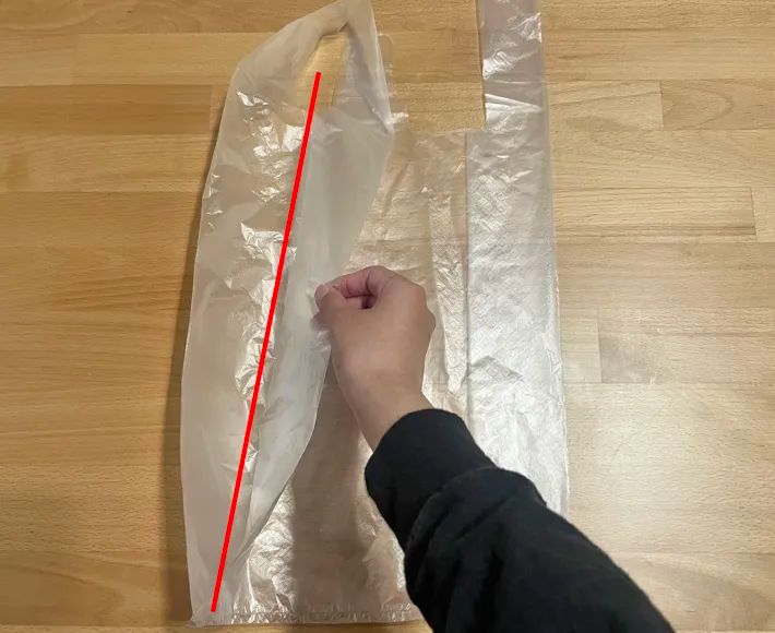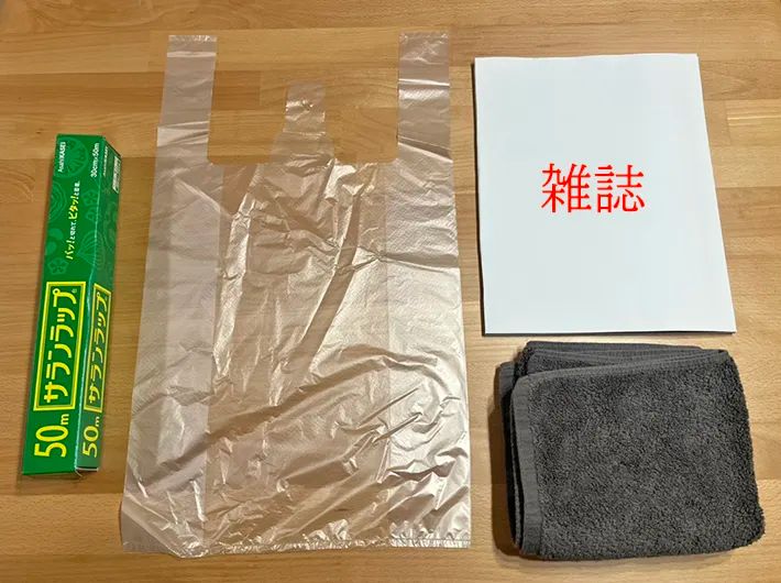 最後は、ビニール袋で三角巾の代用品を作っていきます。