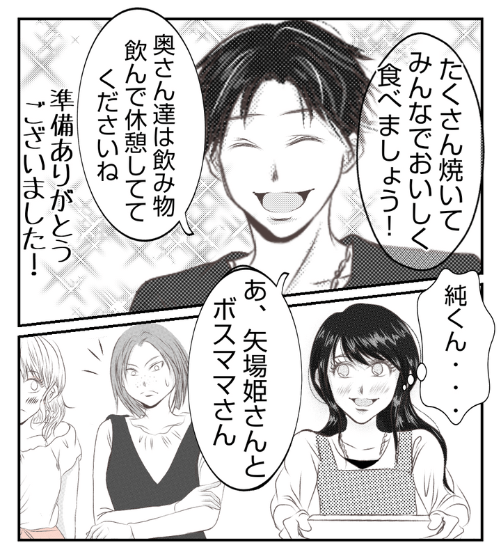プリ美とボスママ以外の奥さんたちはBBQの準備と子どもたちの世話を押し付けられた。