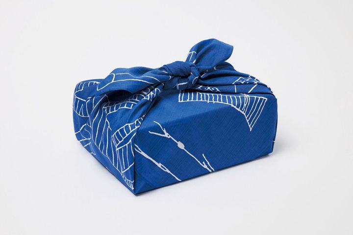 厚手で大判サイズの風呂敷に、猪熊弦一郎が手がけた丸亀市立中央図書館の壁画モチーフを落とし込んで。伸びやかな線とリズミカルな構図が、包む所作そのものを楽しく引き立てる。日常使いはもちろん、バッグ代わりやインテリアのアクセントとしても活躍しそう。¥2,750/丸亀市猪熊弦一郎現代美術館(MIMOCA)ミュージアムショップ