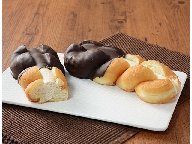 ふんわりしっとりとしたツイストドーナツに、カスタードホイップをサンド。