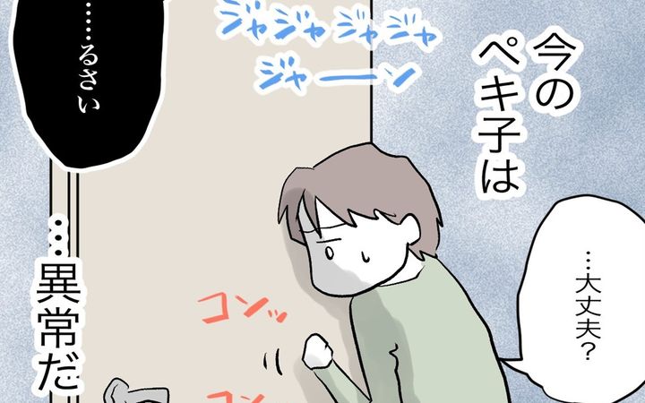 しかしペキ子は、「私をつわり扱いするな!ストレスでつわりになる!」と言って床を叩き始めます。声をかける優一に、「お腹に障るから、話しかけないで触らないで!黙ってそばにいて。スマホとか見たら許さない」と告げます。