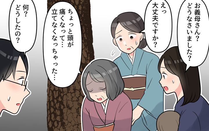 お宮参り当日、「草履が痛くて歩けない。喉も乾いた」と訴え始めた義母。そんな義母に明音の父親が飲み物を差し出しました。