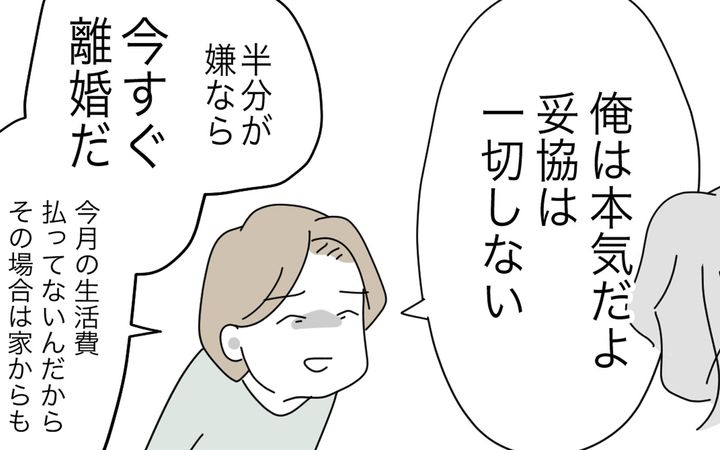 「半分が嫌なら今すぐ離婚」 究極の2択に妻の本音は?【半分夫 Vol.49】
