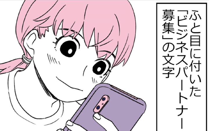 2年間パートをしてきたお弁当屋さんが閉店することになり、職を失うことになった山吹いろ。新たな職を探し始め、求人情報に掲載されていた「ビジネスパートナー募集」という文字に惹かれ、話だけでも聞いてみようと考えます。