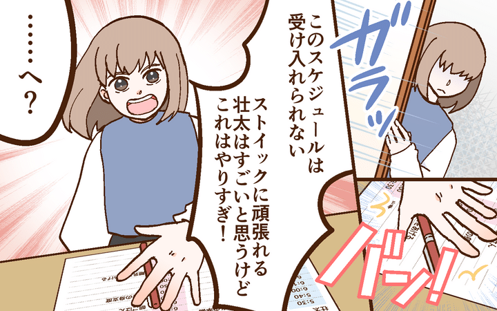 沙耶の気持ちを取り戻そうと、壮太はひとりで家事と育児を回せるようなスケジュールを考えることにしました。週末、作ったスケジュールを妻に見せると、「あなたは何もわかってない…」と呆れられてしまい…。