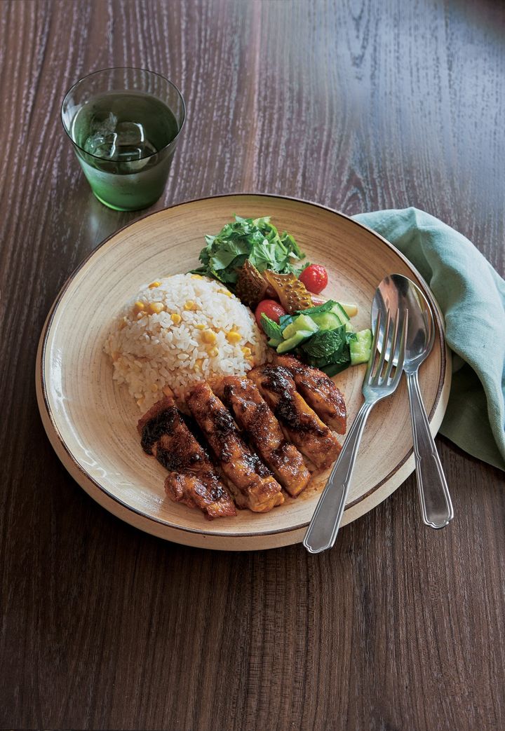 2位にランクインしたのは、東京・清澄白河の人気中華料理店「O2」のまかないごはんから生まれた一品。作り方はとっても簡単! 鶏肉に中華テイストのたれを絡め、焼くだけで完成する。サイドメニューのとうもろこしごはんの甘みと、濃厚な甘辛味の相性も抜群だ。