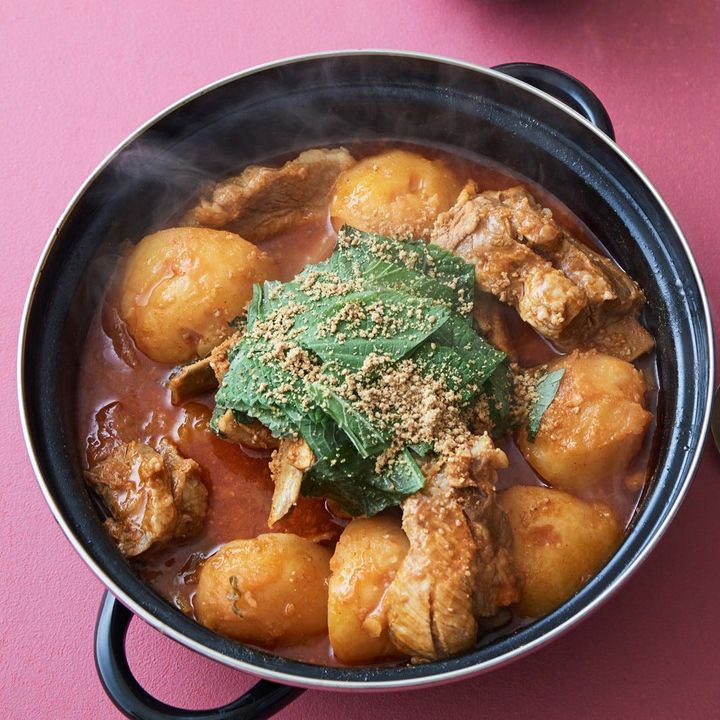 冷え込む冬の季節に最も保存されたレシピは、韓国の鍋料理「カムジャタン」。重信初江さんのレシピは、本来は豚の背骨肉を使うところをスペアリブで代用し、時短調理を実現。ごろっとした具材で満足度も高い一品だ。〆は、残ったスープにごはんとキムチを加え、ごま油で炒めてチャーハンにするのもおすすめ。