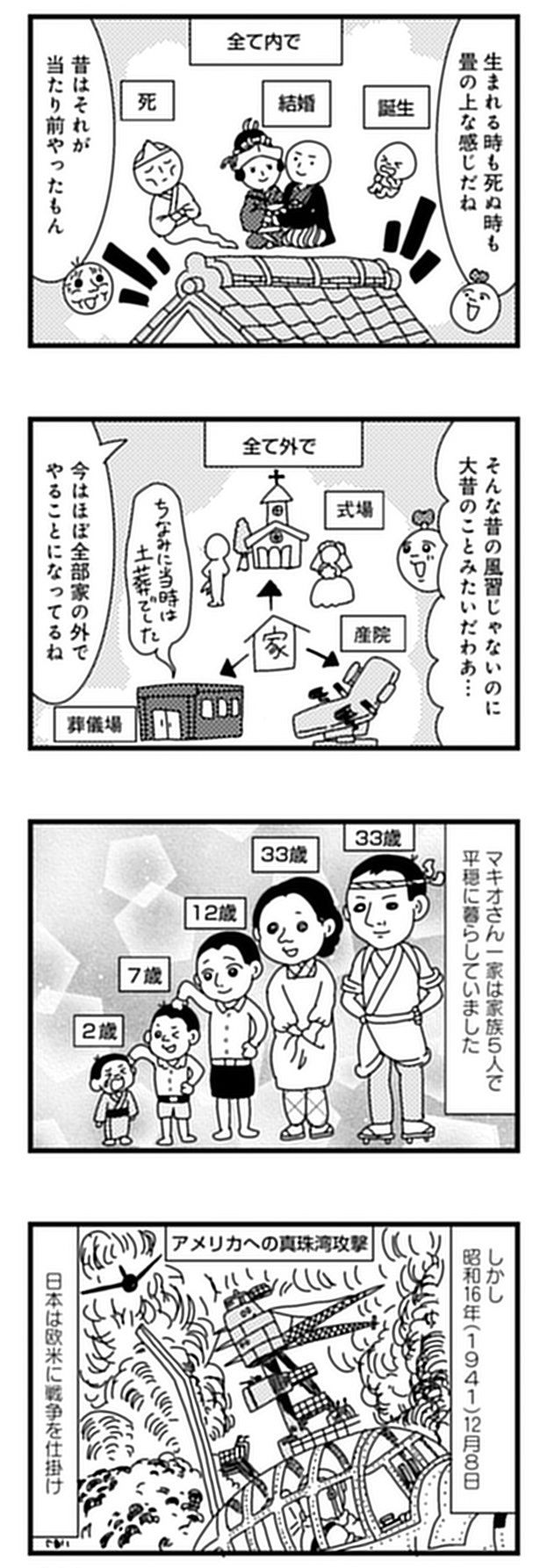 平成生まれのアラサー・まげよが結婚したのは、親子ほど年の離れた年上の夫。九州の片田舎に嫁いだ彼女は、自分の祖父母と同世代となる80代の義父母と同居することに。あまりのジェネレーションギャップに、共通の話題もなかなか見つからない。そんなある日、お義父さんが口にしたのは、太平洋戦争を生き抜いた壮絶な体験だった――。戦後80年、昭和100年である2025年の締めくくりに出版された『お義父さん、戦争ってどげんやった?年の差婚した私が聞いた「あの日」の記憶』は、かつての日本で実際に起きた戦争の「現実」を描く物語です。