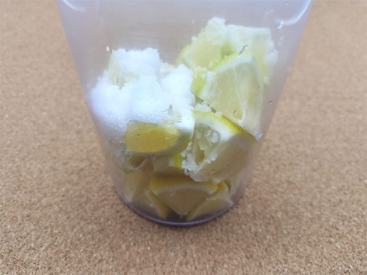 1. レモンのヘタを取り、6等分にカットしてから一口サイズに切ります。タネを取り、塩と一緒に皮ごとミキサーでペーストにして出来上がりです。