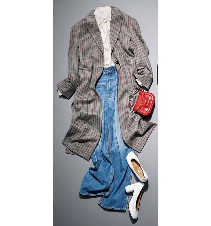 コート¥279,070(リトコフスカ/エイチ ビューティー&ユース)ブラウス¥44,000(アドーア)デニムパンツ¥36,300(ロンハーマン )バッグ¥157,300(ピエール アルディ/ピエール アルディ 東京)パンプス¥64,900(ペリーコ/アマン)