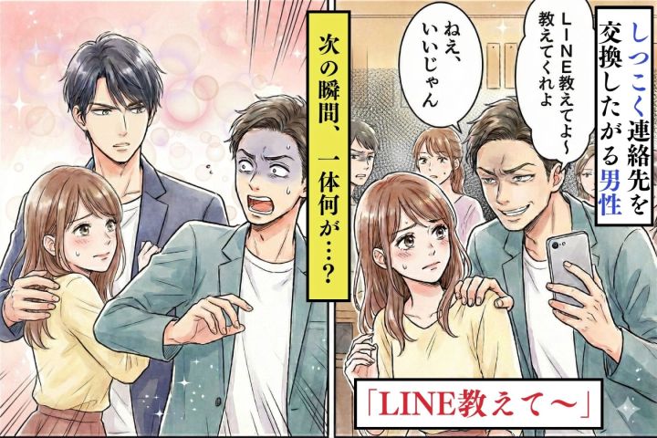 「LINE教えてよ」。何度断っても引き下がらない男性に、困り果てていた私。彼氏がいると伝えても「関係ないじゃん」と笑ってあしらわれるばかり。どうすればこの状況から抜け出せるのか——そう思っていた矢先、思いがけない展開が待っていました。