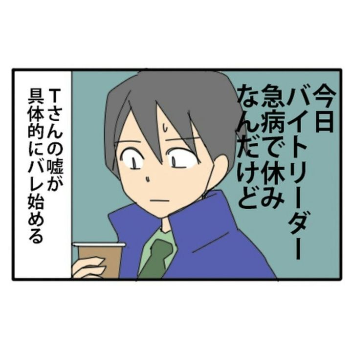 「バイトリーダーに呼ばれて現場に行っていた」というTさん。しかし、バイトリーダーは急病で休みのはず…。Tさんは先輩との仕事に手をつけていないため、ウソをついたようです。すぐにバレる子どもレベルのウソに、呆れてしまいますね…。