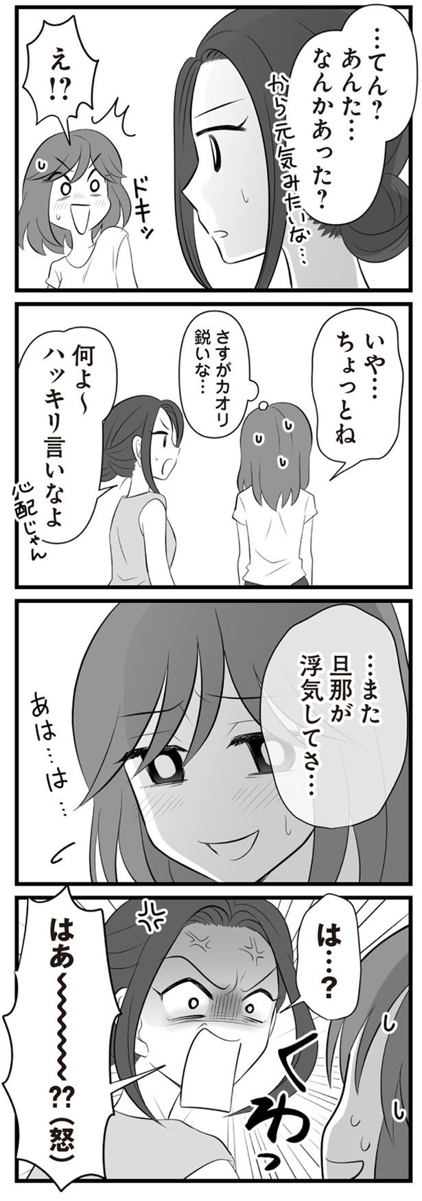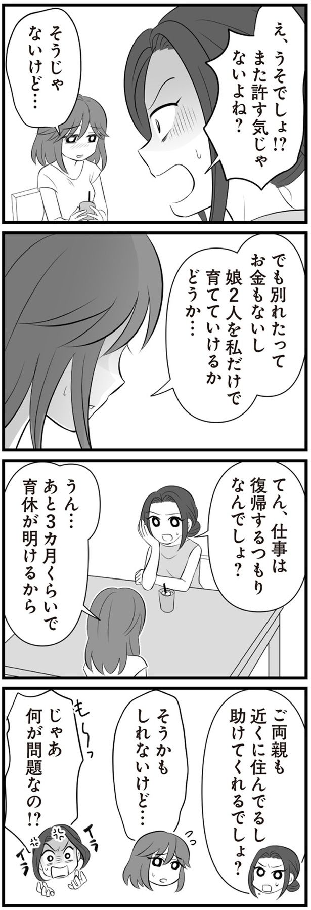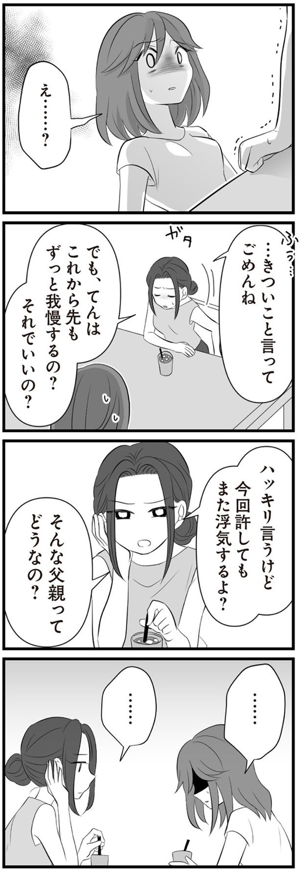 子どもから父親を奪えない…。夫が何度不倫しても別れられない妻に友人が喝/夫は不倫相手と妊活中2㉗