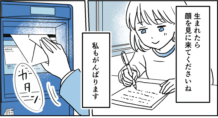 最後に「生まれたら顔を見に来てくださいね」「私もがんばります」と書き添えました。