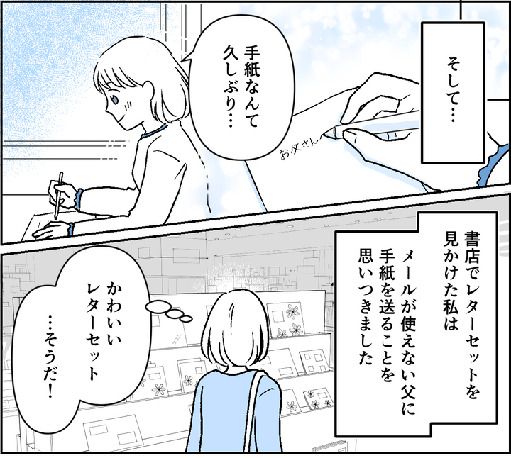 久しぶりに手紙を書くことにしました。書店でかわいいレターセットを見かけたとき、メールを使えない父に手紙を送ろうと思いついたのです。