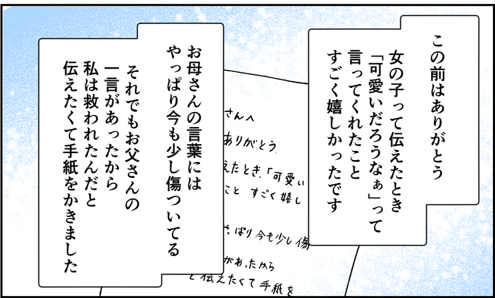 <毒親、ゼッタイに男よ!>祝福してくれた父へ感謝の手紙「生まれたら顔を見に来て」【まんが】