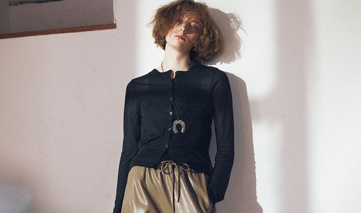 当然、部屋着っぽく見えないことが第一条件。すそをしぼっていない、直線的なワイドシルエットを選び、ONタイムにも穿ける優雅なリラックス感へシフト。