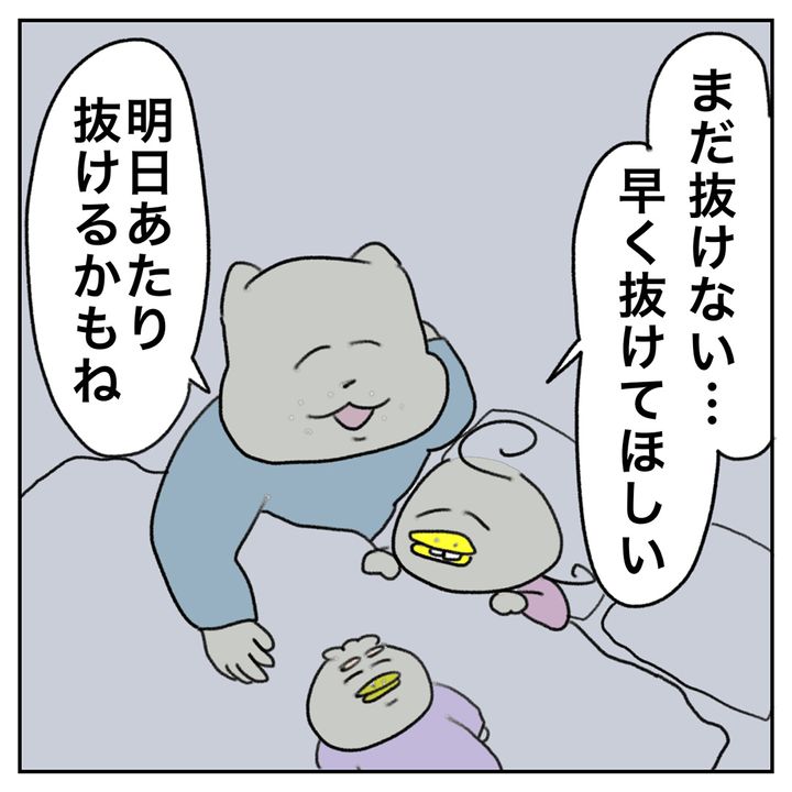 HugMug読者のみなさまこんにちは!もう一年が終わるということに動揺を隠しきれません。うちのコチコーは今年2本の歯が抜けました!! 口を開けて「えへへ」と笑った瞬間、前歯の不在が主張強めでとってもプリティーです。今回の漫画は初めて歯が抜けたときのエピソードなのですが、寝る前に「早く抜けたらいいね〜」とか言ってたのにまさか唇の上に乗っかってるとは。奇跡のような瞬間を見つけてしまいましたが、口の中に入ったりしたら大変なのでそっと取って翌朝見せてあげました。本人も朝起きてきたときは歯が抜けたことに全く気づいておらず、抜けた歯を見せると飛び跳ねてました。そのあとも何度も鏡で口腔チェック。よかったねぇ。幼稚園のお友だちや先生にも歯が抜けたことを言いまくったようです。そして抜けた歯は「お庭に埋める」と言い出し、歯のお墓っぽいものをアイスの棒でつくっていました。だいぶめずらしいことをしてますが、「歯の妖精さんが来るかもしれない」と言っていたのでもう好きにしてくれと思い、そのままにしてあります。歯の妖精さん、回収しにいつか来るかなぁ……。今年はサンタからのプレゼントを夫にもあげようと思っていましたが、準備するのが早過ぎてサプライズが面倒になってしまい普通に渡してしまった作者なのであった。2025年も漫画を読んでいただきありがとうございました。来年もよろしくお願いいたします〜!! よいお年を!!PROFILE