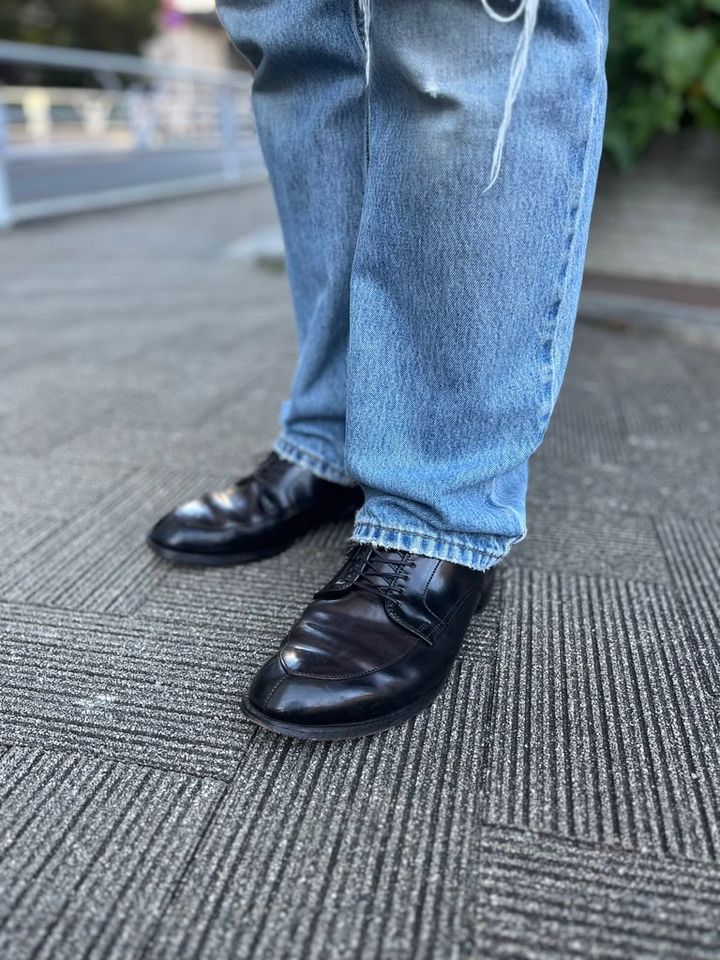 足元は、オールデンのレザーシューズで適度に男っぽく