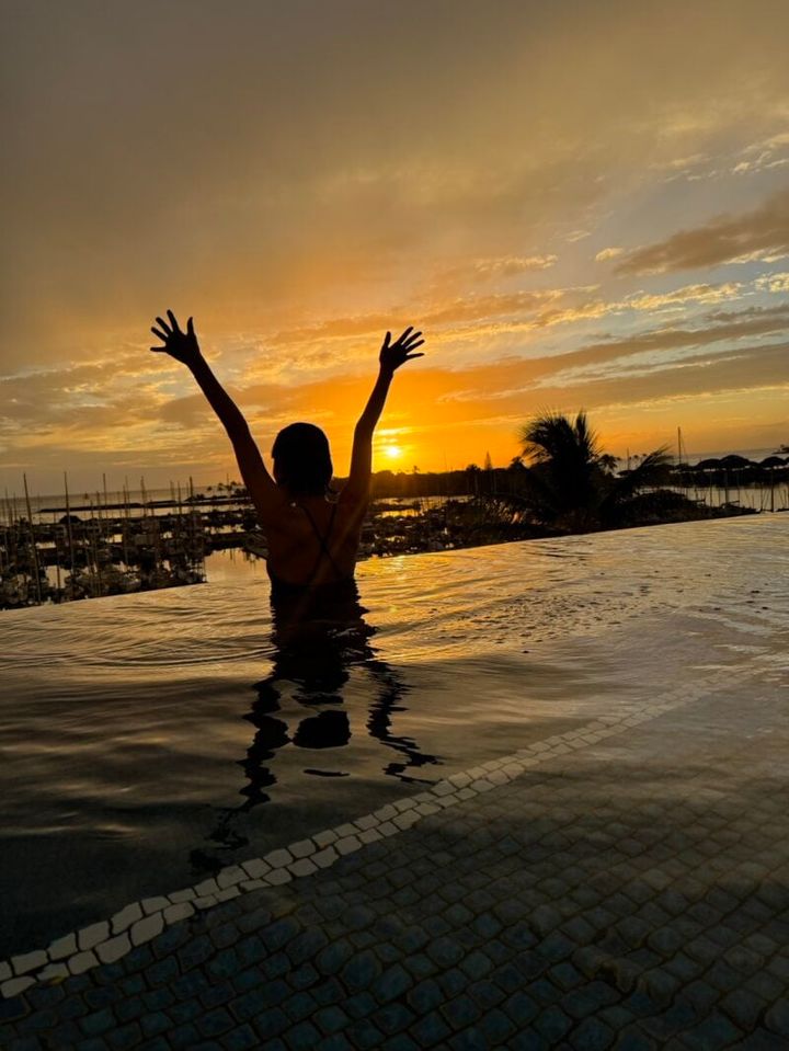 インフィニティプールに入りながら眺める夕日に自然のパワーをダイレクトに浴びることができました♡