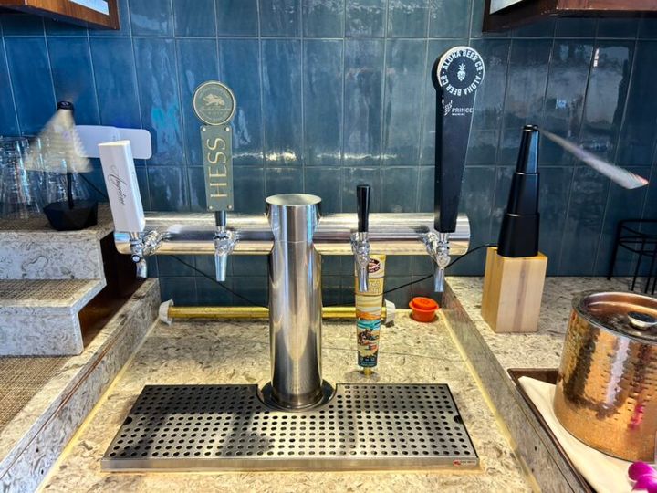 右2つがビールのサーバー。右側はホノルルのブルワリーとプリンスがコラボしたクラフトビール、左側はハワイ名物コナビール!