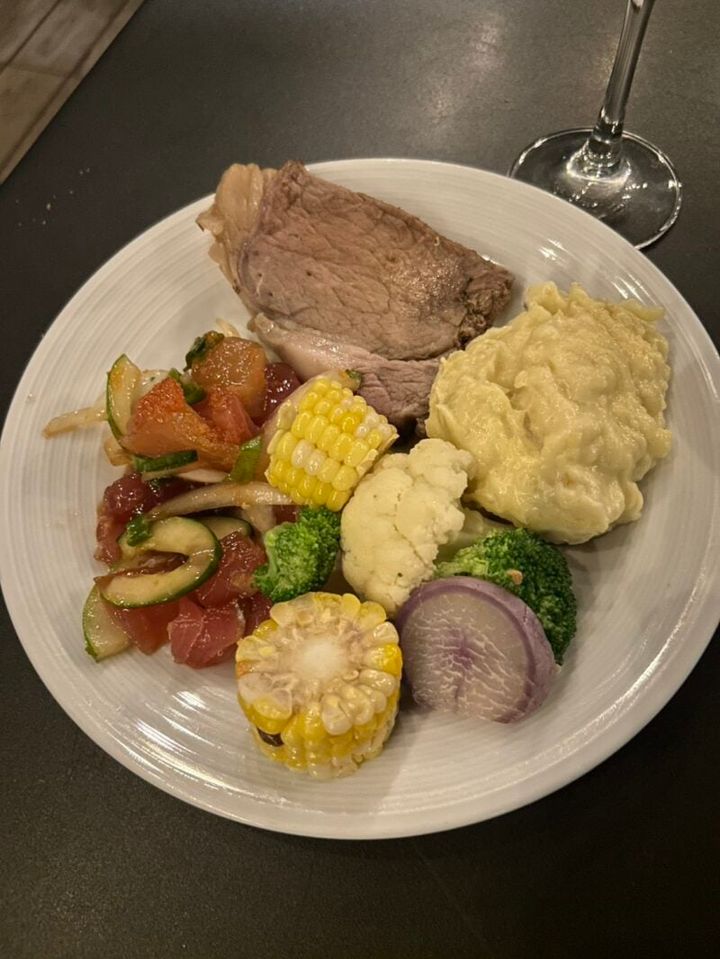 メインメニューは、肉・魚・パスタ・ベジタリアンと日替わり。いわゆるブッフェのようにあらゆるメニューが並ぶ…というわけではないですが、メイン・スチーム野菜・ポケなどバランスよく食事を楽しめます。