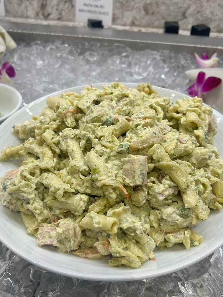 到着したのが朝から昼の時間帯でしたが、ハムやチーズ、フルーツ、ベーカリーが充実していました。ペーストソースで絡めたパスタサラダは濃厚でデリのようなお洒落な味わい。