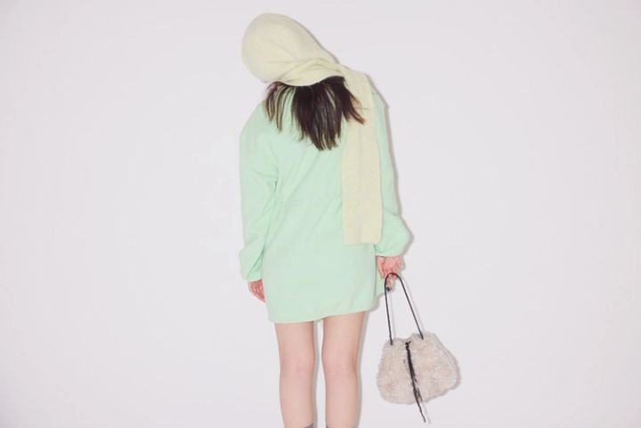 グリーンフリースミニワンピース 15,950円/LILY BROWN イエローバラクラバ 14,300円/アコック(ユー バイ スピック&スパン ルミネ池袋店)ボアバッグ 19,800円/Chapeau d'O 東急プラザ銀座店 ソックス 1,650円/靴下屋(Tabio)シューズ 19,800円/ル タロン グリーズ ルミネ新宿店(ル タロン グリーズ ルミネ新宿店)