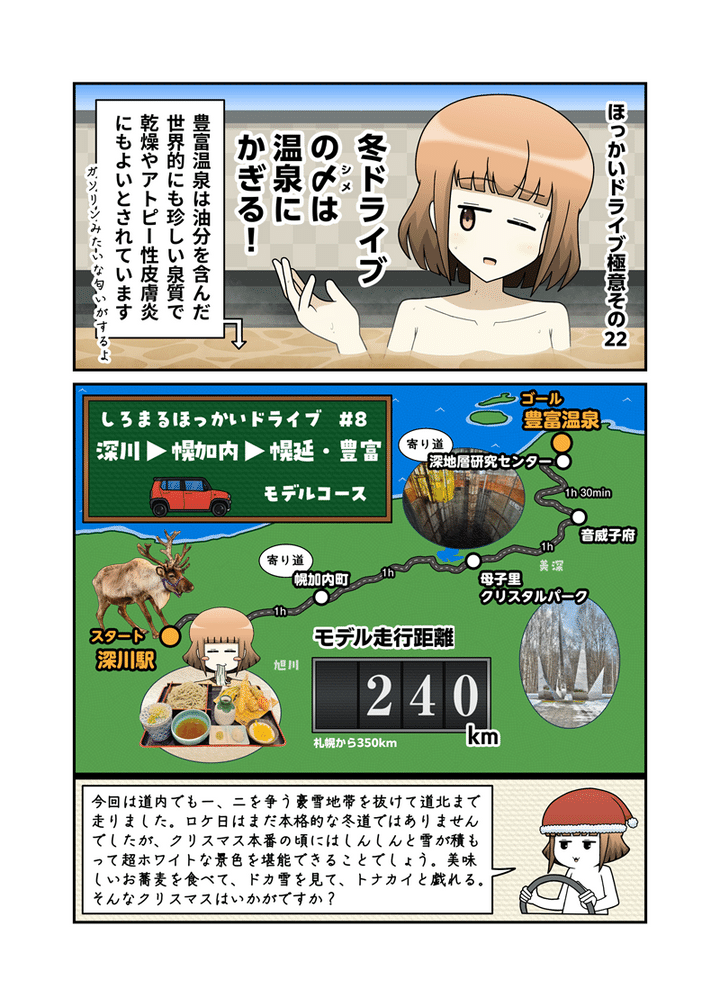 第8話になる今回は、ホワイトクリスマスが当たり前の北海道で、さらに一段階上!玄人向けの超★ホワイトクリスマスを味わうべく、深川をスタートに道北エリアを巡ります。
