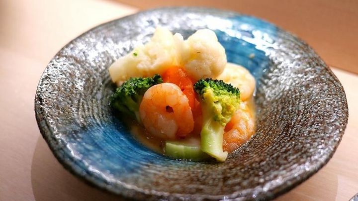 彩り野菜のガーリックシュリンプ。