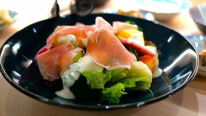 ココでさっそく野菜のマリネが!彩りもキレイでうれしさ倍増♪## あるとうれしいと思った料理が