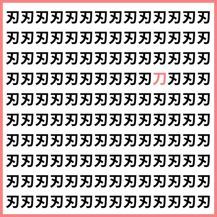 刀に紛れた「刃」を見抜け! あなたの脳は錆びていないか?【1文字だけ違う】漢字間違い探しで脳トレ、何秒で見つかる?
