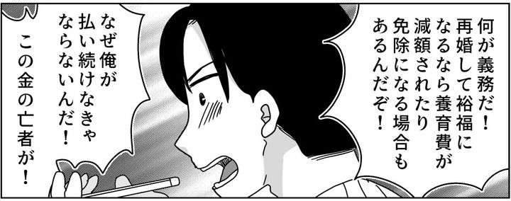 再婚を否定してもリュウタはエンドウさんの話を信じ込み、「再婚して裕福になるなら養育費は減額される」となぜか上から目線で自信満々。思わず「金の亡者はどっちよ」と言ってしまいました。