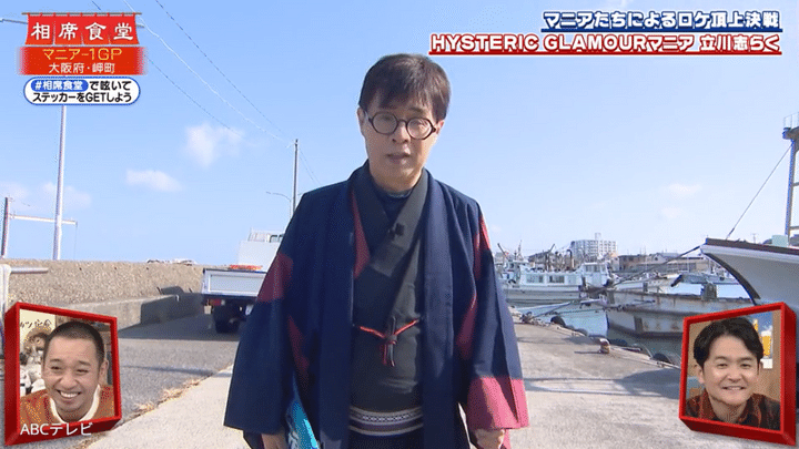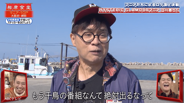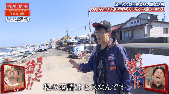 千鳥にスタジオでイジられていることを知らない志らくは、「こんな格好して本当に落語できんのかお前はと言われている立川志らく62歳」とカメラに向かってキメ顔。大阪・岬町の淡輪漁港で出会った人々に、ヒステリックグラマーの魅力を語りまくった。