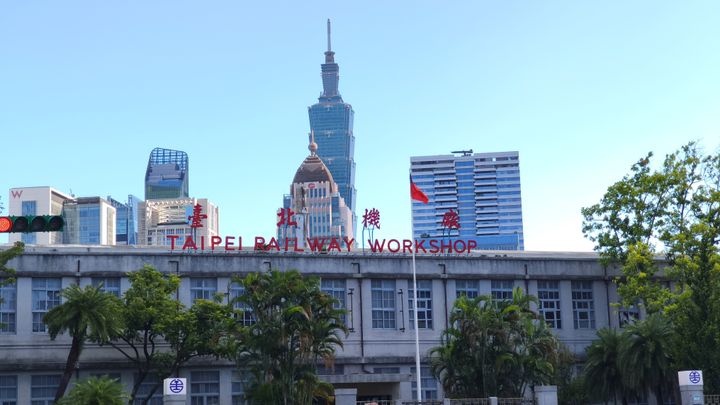 以前は「臺北機廠」という名で操業を継続していました。後方には台北101がそびえ立っています。初出:2025年10月27日
