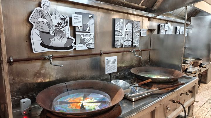 大きな中華鍋が置かれた調理場。調理時の音も再現されています。初出:2025年10月27日