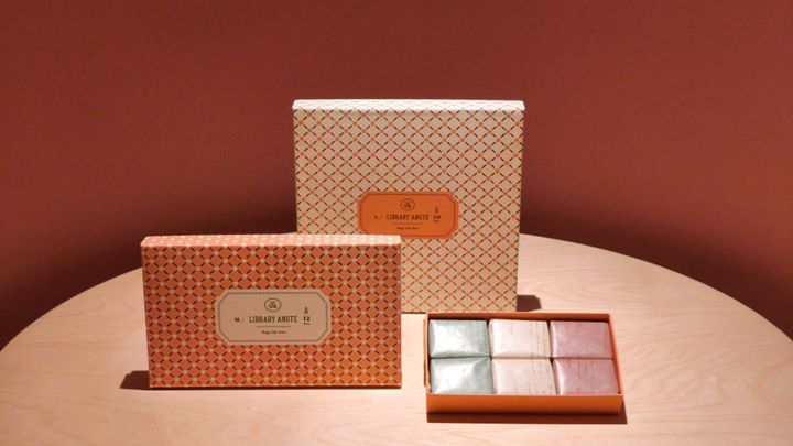 パイナップルケーキのボックスは幾何学模様入り。初出:2025年8月7日