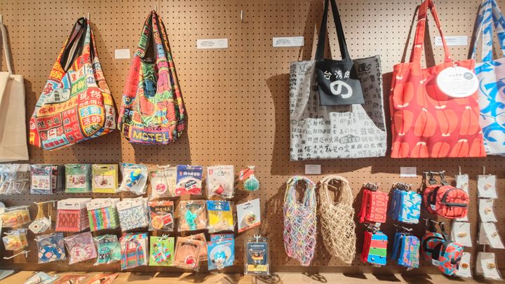 たとえば、「雞肉飯」や「魯肉飯」と書かれたオリジナルTシャツは、洪さんのアイデアが光る商品。また、台南に店舗がある「年繡花鞋」の華やかな刺繍入りチャイナシューズや「錦源興」のテキスタイルグッズなども並んでいます。