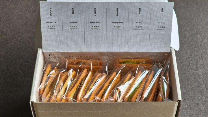 シンプルな箱に入った台湾茶味ヌガー入りクラッカー。初出:2025年8月7日