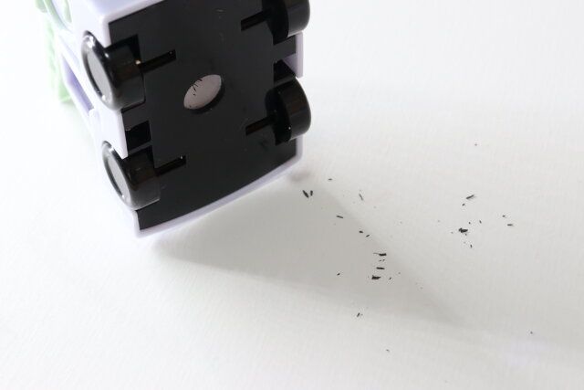 ただ、底面に鉛筆の差し込み口があるので、カスが机の上に落ちるのが難点…。