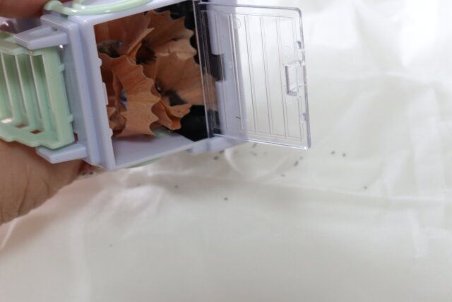 ティッシュの上で作業し、使用後は鉛筆の粉をよく落とさないと机が汚れてしまいます。