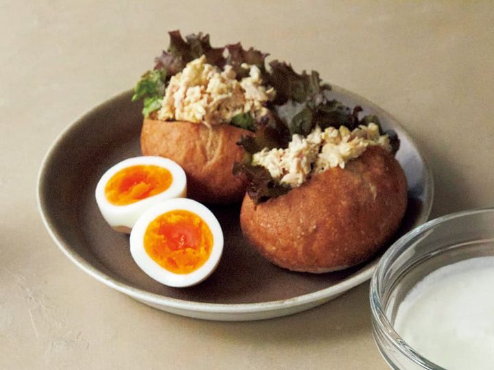 朝食は、血糖値の上昇が緩やかな胚芽パンをチョイス。ツナ缶の油にはEPA&DHAが多く含まれているからオートミールに吸わせて摂取すると◎。