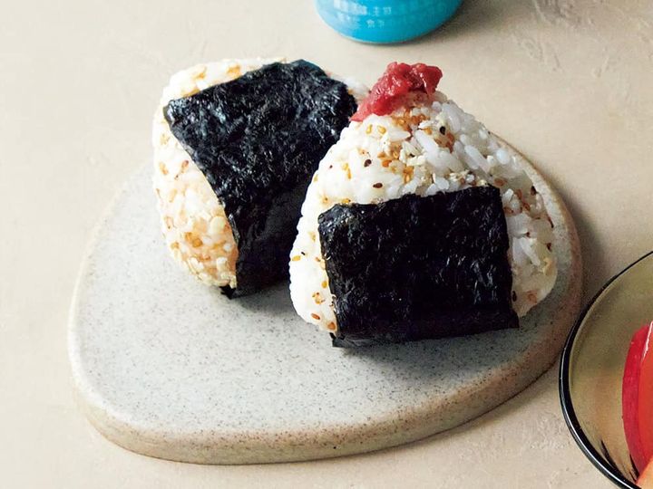❸ ❷に海苔を巻いて梅干しをのせたら完成。