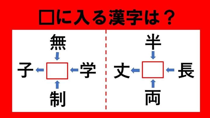 【漢字パズル】□に入る漢字はなんでしょう? 無□、□子、制□、学□・・・!?
