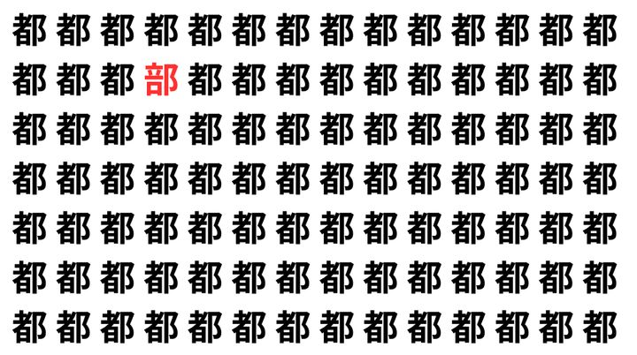 たくさんの「都」の中に、よく似た別の漢字が1文字だけ隠れています。